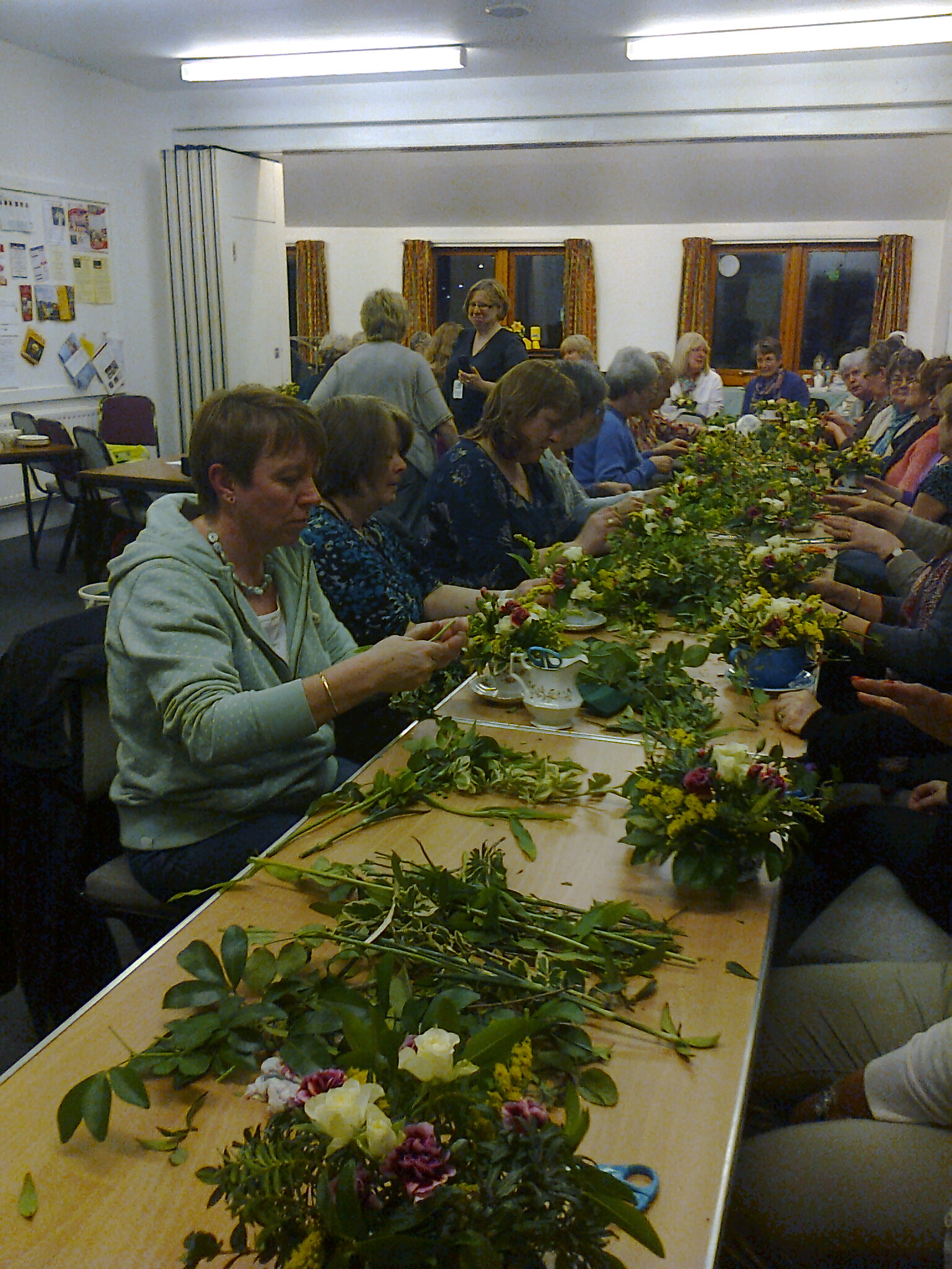how surprised we were to find that-actually-it was! Even for those of us who can destroy a beautiful bouquet in five minutes dead! Now we all have another skill at our fingertips! What a lovely gift to be able to give a friend-or Mum with her special day coming up! Jeanette demonstrated several variations on the theme & as she worked with the flowers told us stories of her international flower arranging exploits, then presented us with the arrangements & more bunches of flowers to add to our raffle prizes for the evening. We had more than the usual number of delighted winners! We would like to thank Jeanette for sharing her expertise with us, Glenys for running the raffle & Pauline for organising the refreshments-where would we be without those two! Each month we ask for a volunteer to provide cake for the refreshments & this month, Jacqui had offered-we would like to thank her as well. So please think about taking a turn-we don’t want the same people to bake for us every time-if we all take a turn it’s easier more friendly. If you don’t want to bake something bought would be fine! Although-well, you know-shh-we don’t want other WIs to find out about that, do we!