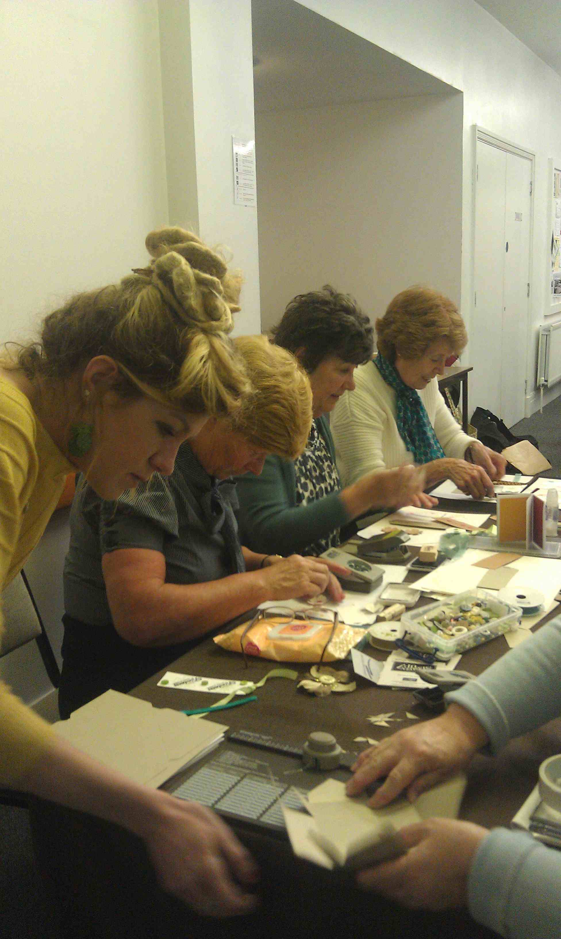 This month we decided on a ‘Show & Tell’ session, so we could see just exactly what our talented members are getting up to at home! What an array of crafts there was-from card making & paper-craft to good old knitting & new fangled decorative wreaths! It was lovely to see so many people who were brave enough to take part & delightful to hear about their crafts & have a chance to try out most of them too. Thank you to everybody who came along to make it such a successful & enjoyable evening. Our special guest was Natalie Kay from the Stanley Picker Gallery at Kingston University, who had offered us a visit & workshop at the gallery. She came to tell us about her plans for the day, for which several of us signed up. This meeting positively encouraged our favourite way of spending our meetings-chatting! We did a lot & enjoyed it no end!