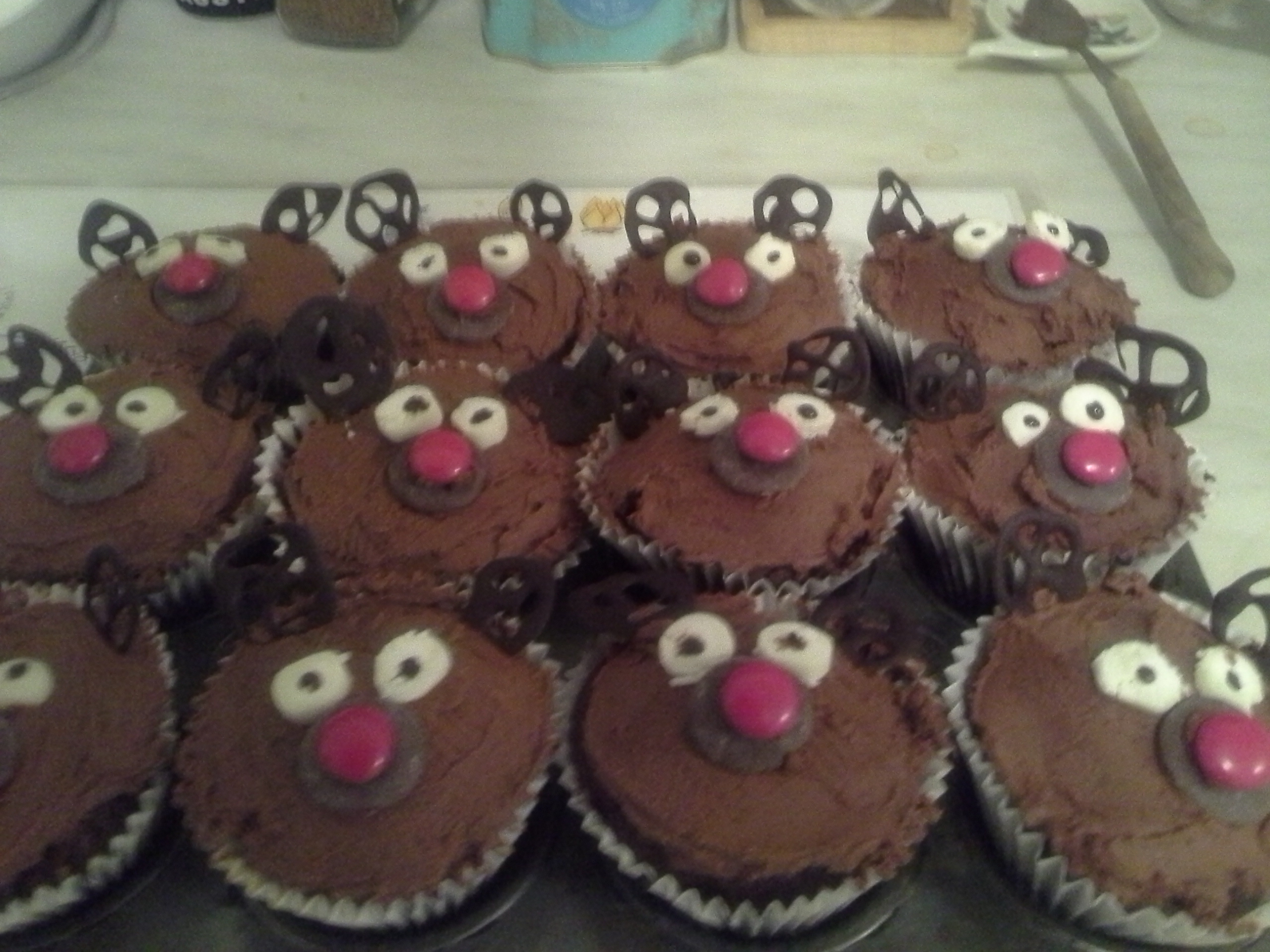 knitted buntings, 2 finger puppets, Christmas biscuits.