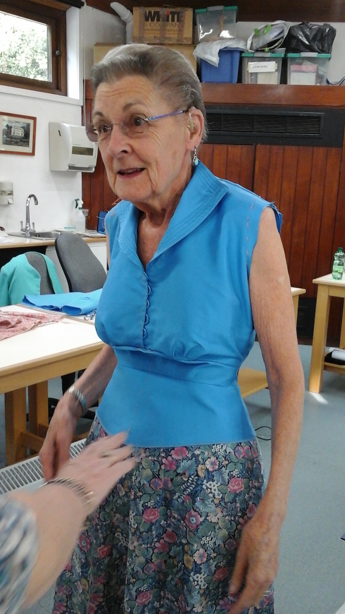 Dawn started here project again from scratch as she didn’t like the style if the sleeves on her first attempt and took home a tacked and partially seemed bodice and with some help from my Jenny will complete at home.