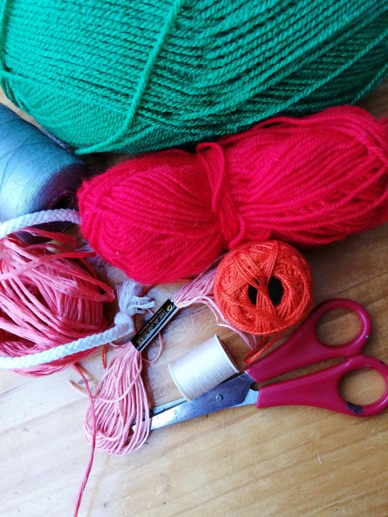 You will also need a pair of scissors, some sewing thread, an ordinary sewing needle and, if you have one, a large eyed needle will be very useful.